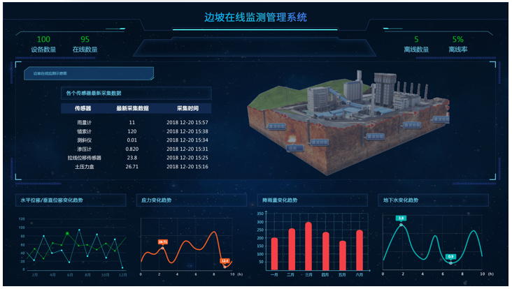 将结构健康监测与物联网结构体系、云计算、局域网/通讯网等多网无缝连接等技术结合,建立一套智能边坡健康监测系统,为边坡日常养护、管理和突发事件应急处置发挥重大作用。